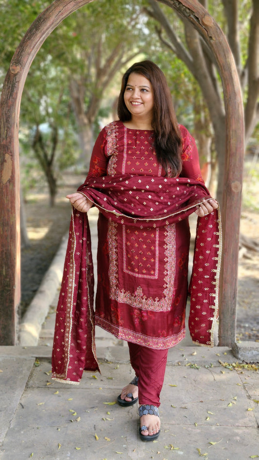 Gulnaar Grace – Premium Silk Embroidered Three-Piece Suit Set