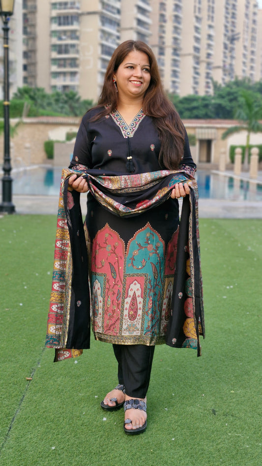 Regal Black Printed Kurta Set with Designer Dupatta