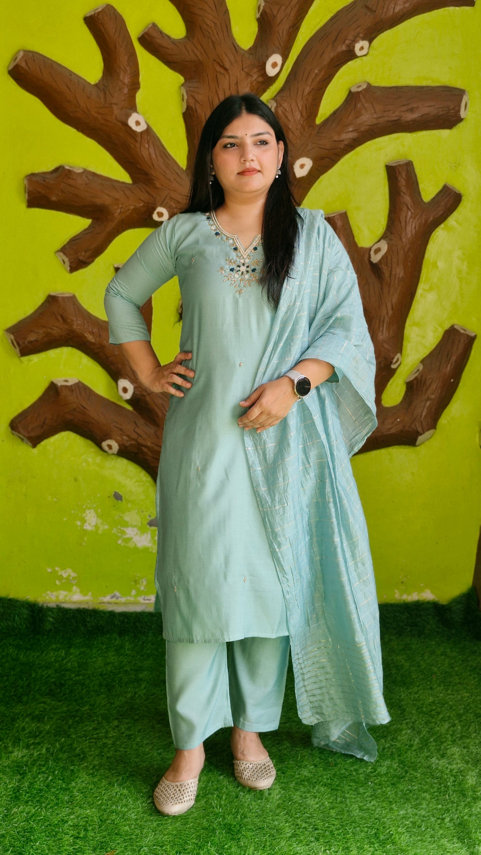 "Aqua Serenity" - Elegant Embroidered Kurta Set