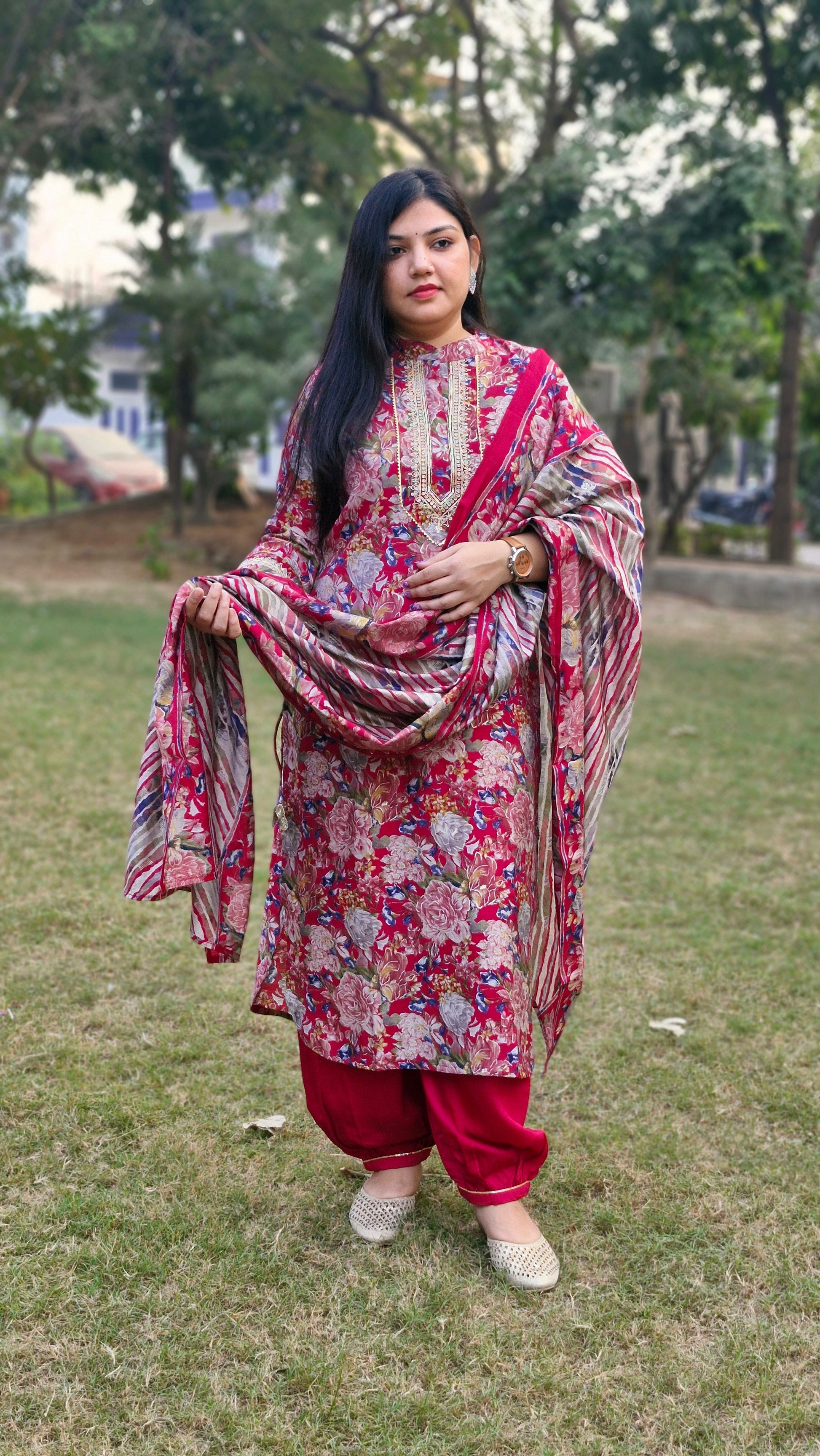This suit is ideal for women who love to combine traditional elegance with modern aesthetics. Perfect for casual or semi-formal events, it ensures you stay stylish and comfortable all day long.