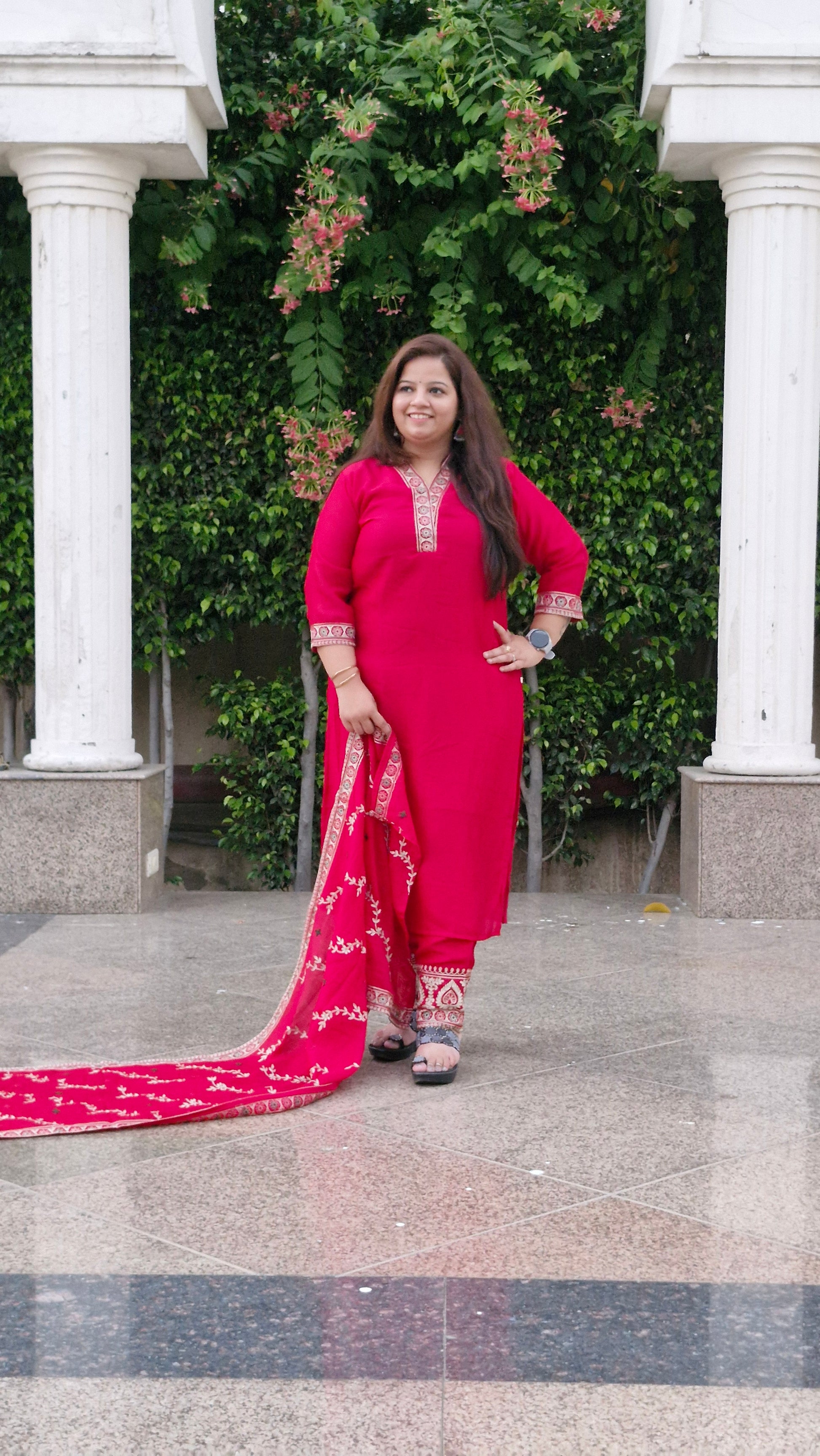 Drench yourself in the timeless elegance of our Rani Pink Kurta Set, a vibrant ensemble designed to capture attention at every festive occasion, celebration, or intimate gathering.